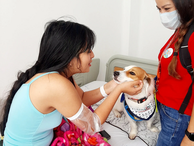 Actividades Asistidas Intrahospitalarias donde guías y caninos desarrollan ejercicios lúdicos de interacción con el fin de mejorar el estado anímico de pacientes y cuidadores, otorgar mayor motivación en sus tratamientos y colaborar con su salud en general que puede ayudar en la reducción de los tiempos de hospitalización entre otros.
